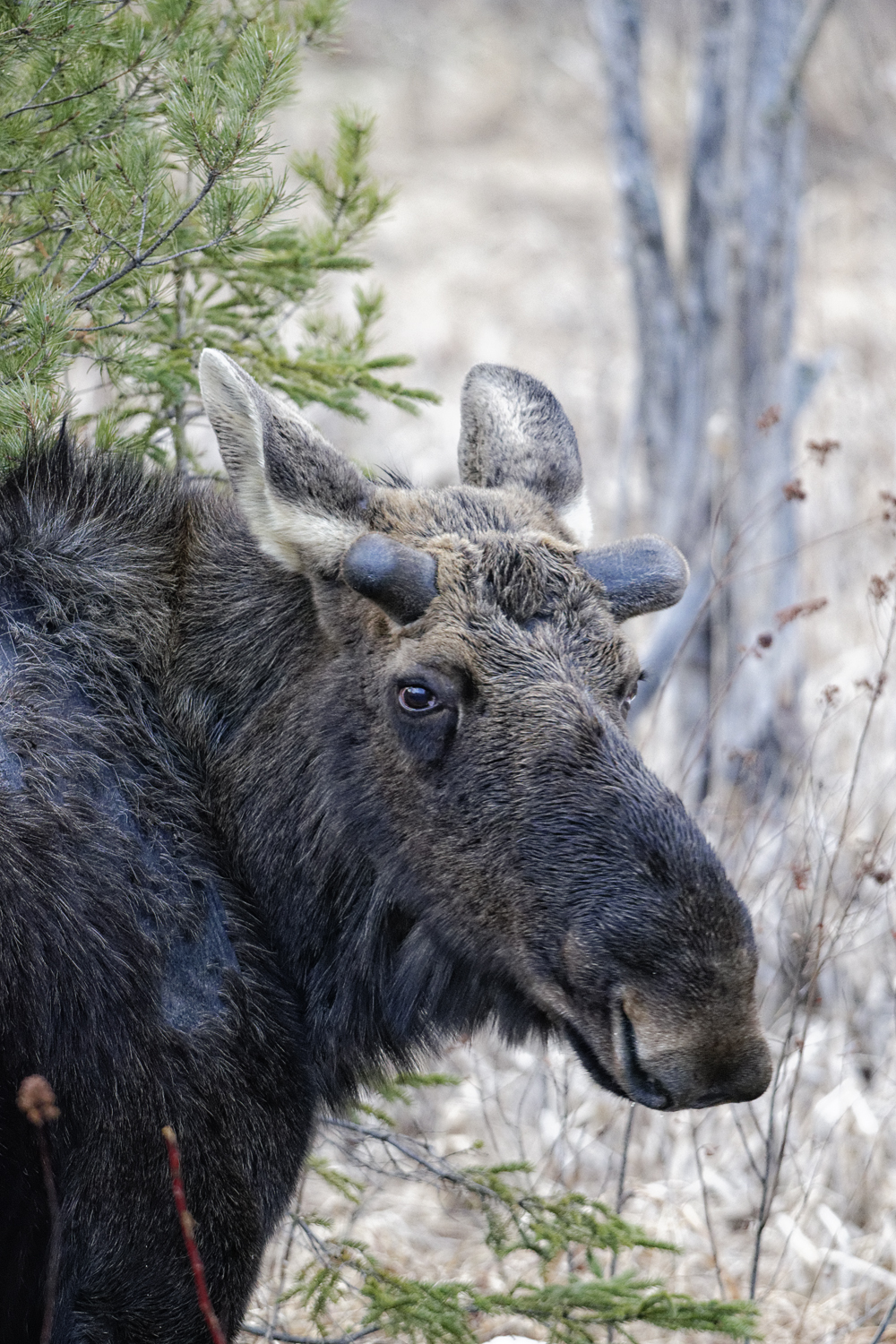 Alces alces, the moose, is the largest of the deer family (that hasn’t gone extinct). Seeing a wild one was very high on my list of things to do in Canada; after two and a half years, I was still failing miserably.